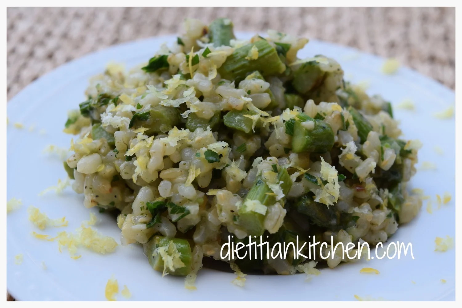 Dietitian Kitchen Tip: Also works well as a chilled dish by itself or as a salad topping for tomorrow’s lunch. If asparagus is not in season, can substitute with green beans or zucchini.